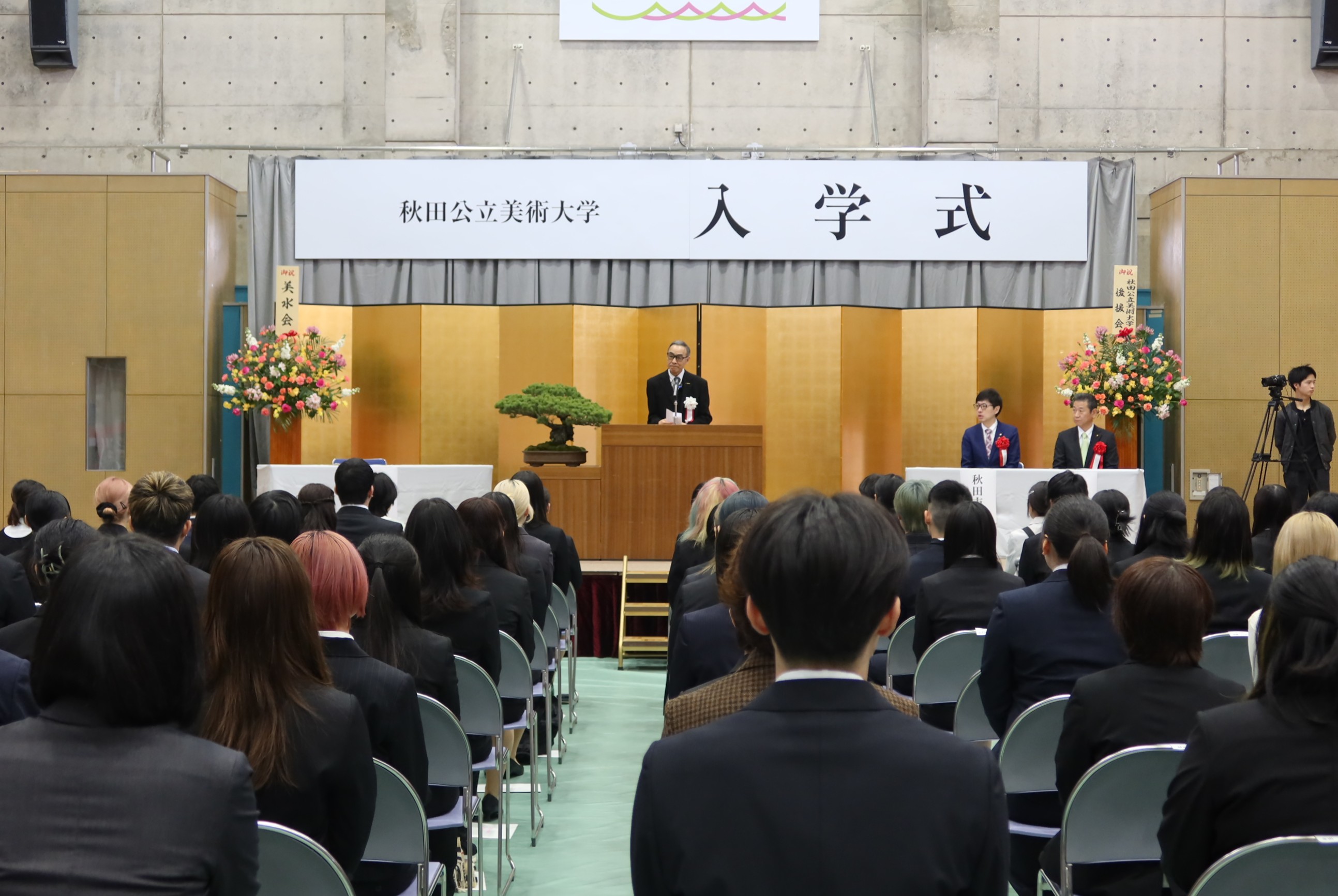 4月3日(金)、キャンパス内の体育館において、令和8年度入学式を挙行し、118名(学部104名、編入1名、大学院11名、博士2名)の新入生が秋田公立美術大学および大学院に入学しました。