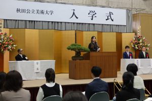 また、入学生代表の佐藤桜さんは、新入生宣誓で「多様な価値観を持つ仲間と切磁琢磨しながら、自身の表現の可能性を広げるとともに、地域とのつながりを大切にし、社会に貢献できる人間へと成長していきたい」と、大学生活への抱負を述べました。